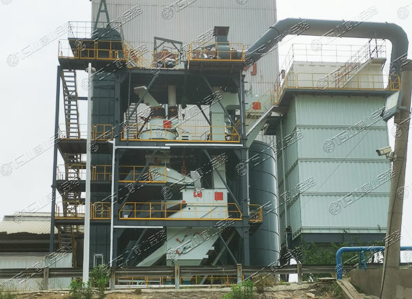原料經(jīng)過電子秤進入到皮帶輸送機中,由全封閉的提升機將物料入到五孔碾磨制砂機內(nèi)進行破碎處理,再由空氣篩對破碎后的物料進行篩分、選粉處理,篩分后的較大物料會返回五孔碾磨制砂機中進行二次破碎,符合要求的砂子則由傳送帶輸送至成品倉中;篩分過程中的粉塵會經(jīng)粗細粉分離機進入到布袋收塵器內(nèi),而其中較大的粗顆粒會在粗細粉分離機的作用下,按需求在成品砂中進行回摻,細粉塵將通過風(fēng)力進入到布袋收塵器,作為副產(chǎn)品進行使用。