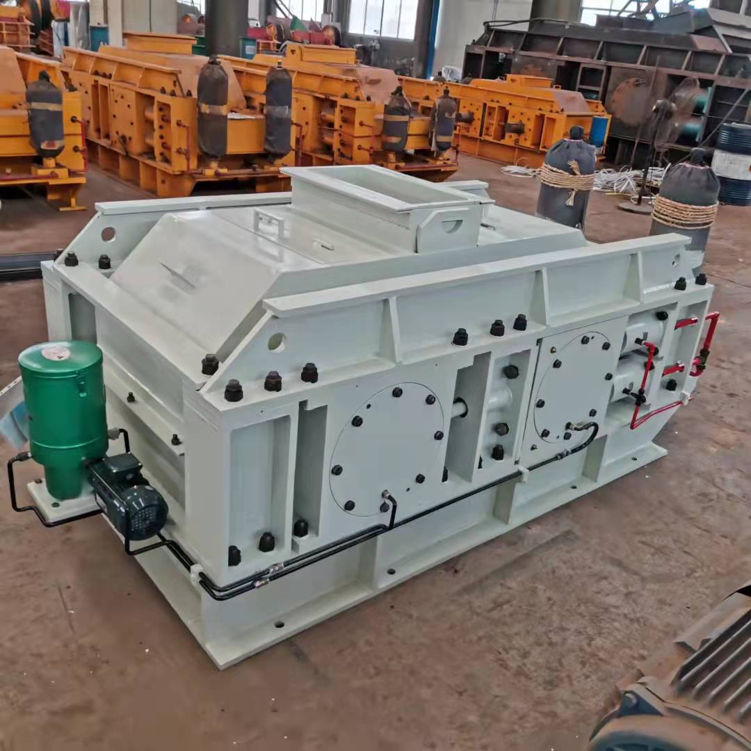 該機(jī)工作原理與輥壓機(jī)相近,采用了料層擠壓破碎的理念,其主體是由一對相互平行、水平安裝的圓柱形輥?zhàn)咏M成,分別由兩套彼此獨(dú)立的動力裝置驅(qū)動。當(dāng)這對輥?zhàn)幼鱿嘞蜻\(yùn)轉(zhuǎn)時,進(jìn)入喂料口的物料受到輥?zhàn)拥臄D壓、沖擊、磨削而細(xì)碎,并隨自身重力被旋轉(zhuǎn)的輥?zhàn)铀Τ?,向下卸落?/p>