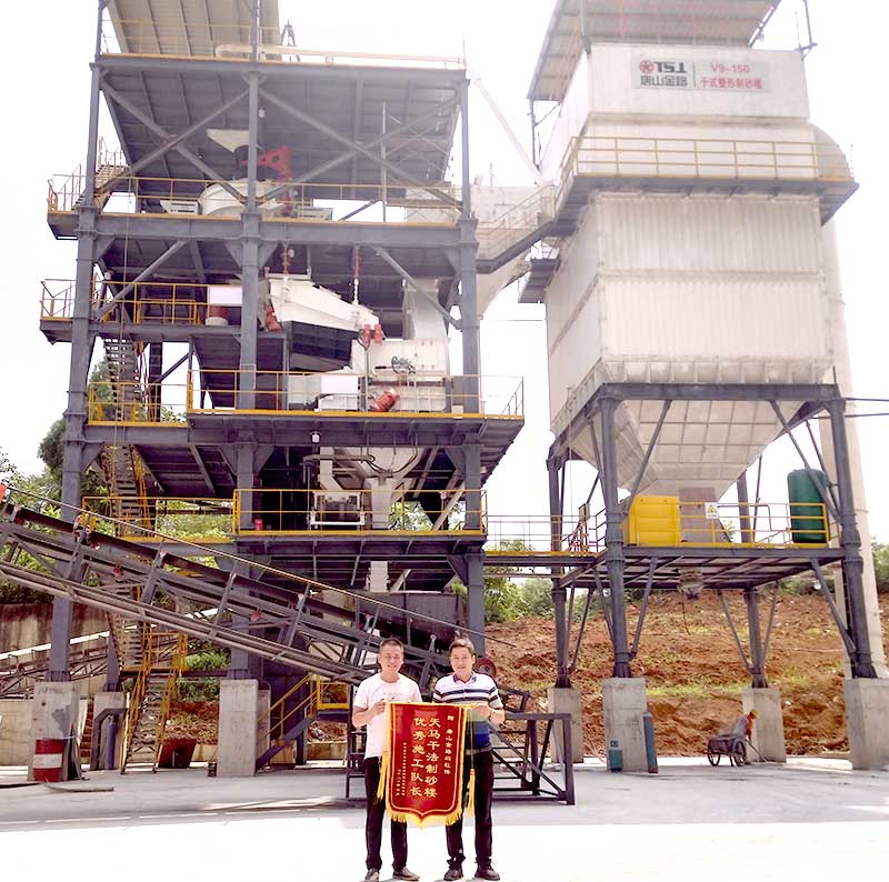 天馬建筑是一家現(xiàn)代化綠色環(huán)保型生產(chǎn)企業(yè),該公司專業(yè)生產(chǎn)商品混凝土。高度重視產(chǎn)品的質(zhì)量,以“質(zhì)量第一,服務至上”為企業(yè)宗旨,現(xiàn)需擴建一條時產(chǎn)150噸機制砂生產(chǎn)線。經(jīng)過多方考察、對比,最終選定了唐山金路的制砂生產(chǎn)線。唐山金路根據(jù)天馬建筑制砂原料和用砂需求,為天馬建筑量身定制的這套時產(chǎn)150噸的V9干法制砂生產(chǎn)線。項目投產(chǎn)近一個月以來,得到天馬建筑的高度認可與好評,在項目實施階段,對我公司安裝人員的技術,給予肯定與認可,特送錦旗表示感謝。這錦旗不僅僅是榮譽的象征,更代表“天馬建筑”對于唐山金路全體工作人員的認可,客戶的滿意就是我們前進的動力。